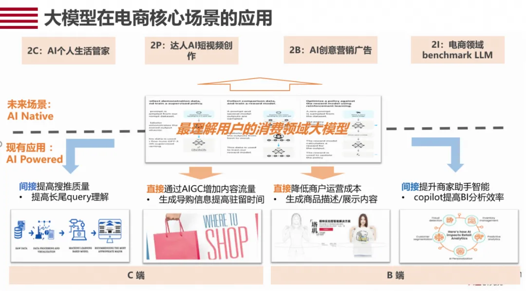 因此,AI帮助商户降本增效与提升供给质量,智能化运营帮助从业者(特别是中小商家)大幅度降低经营成本,促进更有创意的良性竞争。在用户端提升消费者体验,不断释放消费潜力。在产业侧,加速供需的良性循环,使人-货-场链接更有效、更多元、更便捷。