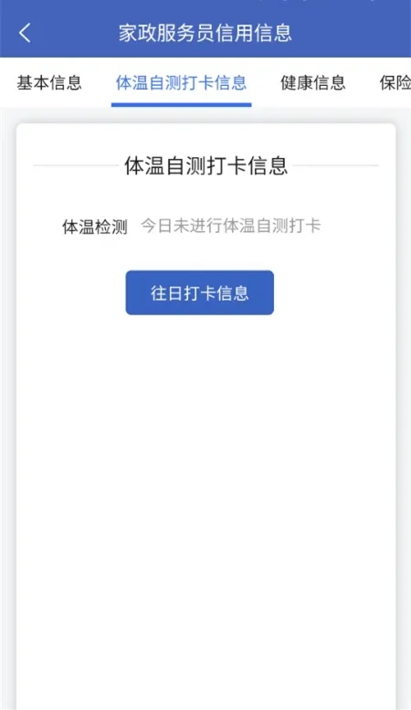 选择需要查询的信息。可查信息包括基本信息、体温自测打卡信息、健康信息、保险信息、从业信息和培训信息。