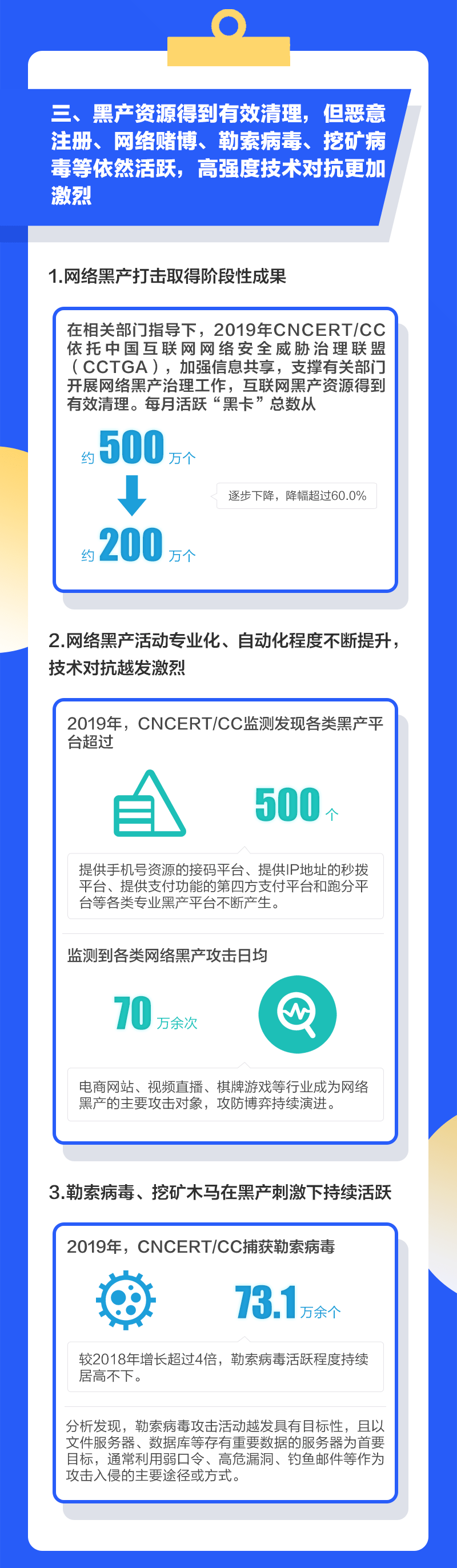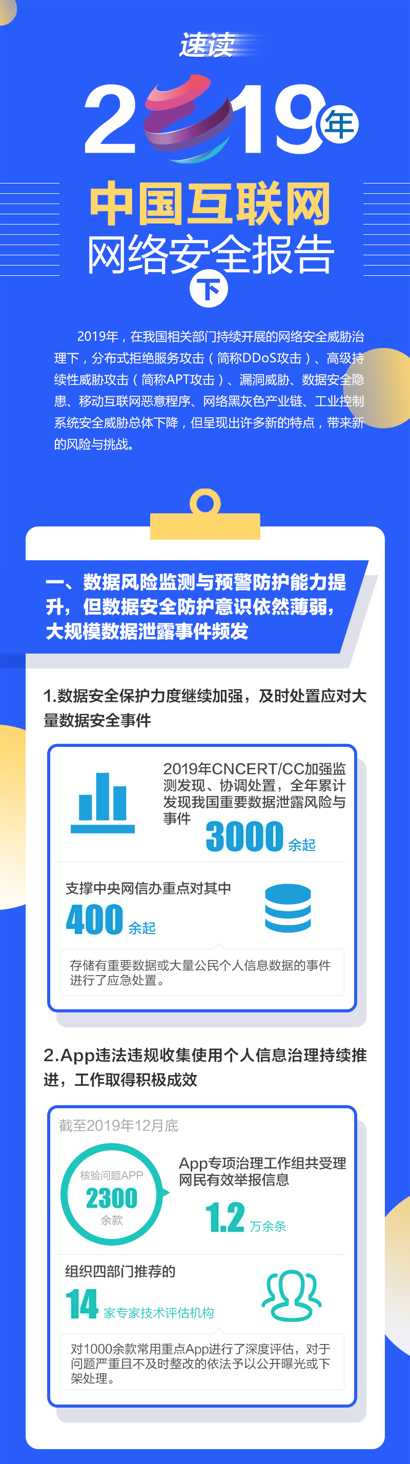 8月11日,国家互联网应急中心(CNCERT/CC)正式发布《2019年中国互联网网络安全报告》,内容涵盖我国互联网网络安全态势分析、网络安全监测数据分析、网络安全事件案例详解、网络安全政策和技术动态等多个方面。我们带您一图速览2019年我国互联网网络安全状况。