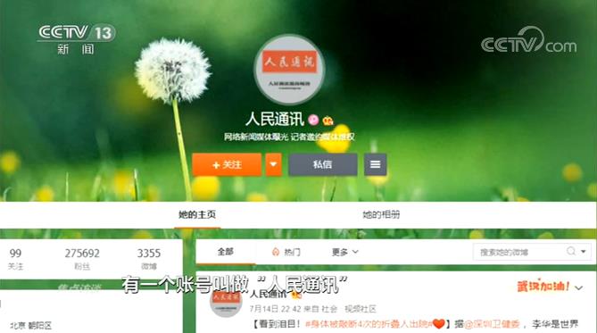 新浪微博社区管理中心副总监余安迪说:“专项整治主要针对的违规行为就是冒充媒体,违规采编新闻,转载新闻的设计、影响、传播行为,从行动至今大概公示处置了25万多个账号。举几个例子,有一个账号叫做“人民通讯”,通过看它的账号可以发现,不管是在昵称、内容、简介、头像,都是在冒充正规的新闻机构。”