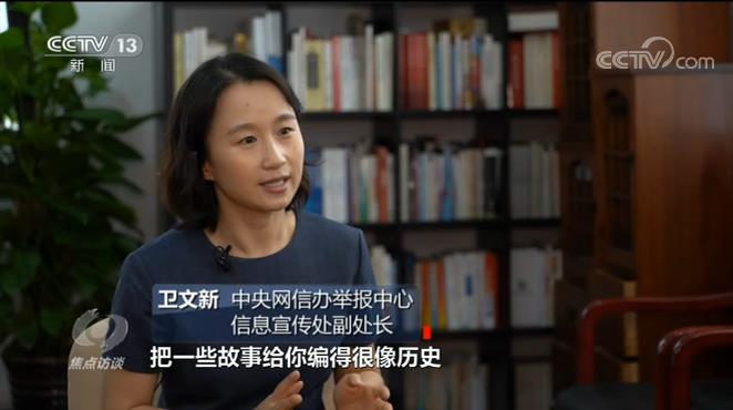 中央网信办举报中心信息宣传处副处长卫文新:“表现形式变得更加隐蔽,平台上近年来色情、暴力冲击力很强,让人容易直接察觉到的这种信息越来越少了,演变成一些自媒体文章通过杜撰和演绎手法,把故事编得很像历史,不易察觉,人们也不易发现。”