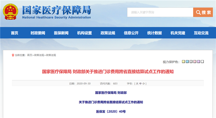 据国家医疗保障局网站30日消息,国家医疗保障局、财政部发布《关于推进门诊费用跨省直接结算试点工作的通知》。通知指出,2020年底前,总结京津冀、长三角、西南5省等先行试点地区可复制可推广的试点经验,依托国家医保局跨省异地就医管理子系统进一步扩大门诊费用跨省直接结算试点范围,探索全国统一的门诊费用跨省直接结算制度体系、运行机制和实现路径。