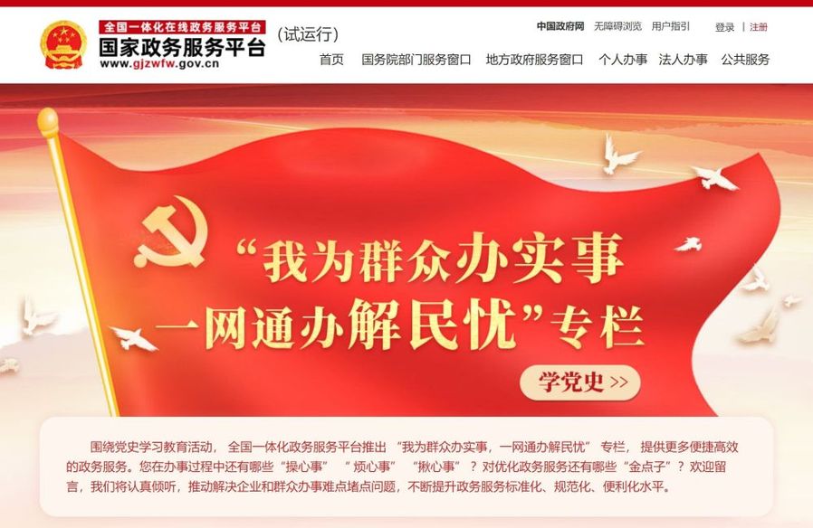 围绕党史学习教育,国家政务服务平台近日推出“我为群众办实事,一网通办解民忧”专栏。企业和群众在办事过程中如果遇到“烦心事”,或者有优化政务服务的“金点子”,都可在专栏“说说心里话”。平台将认真倾听,推动解决企业和群众办事难点堵点问题,不断提升政务服务标准化、规范化、便利化水平。
