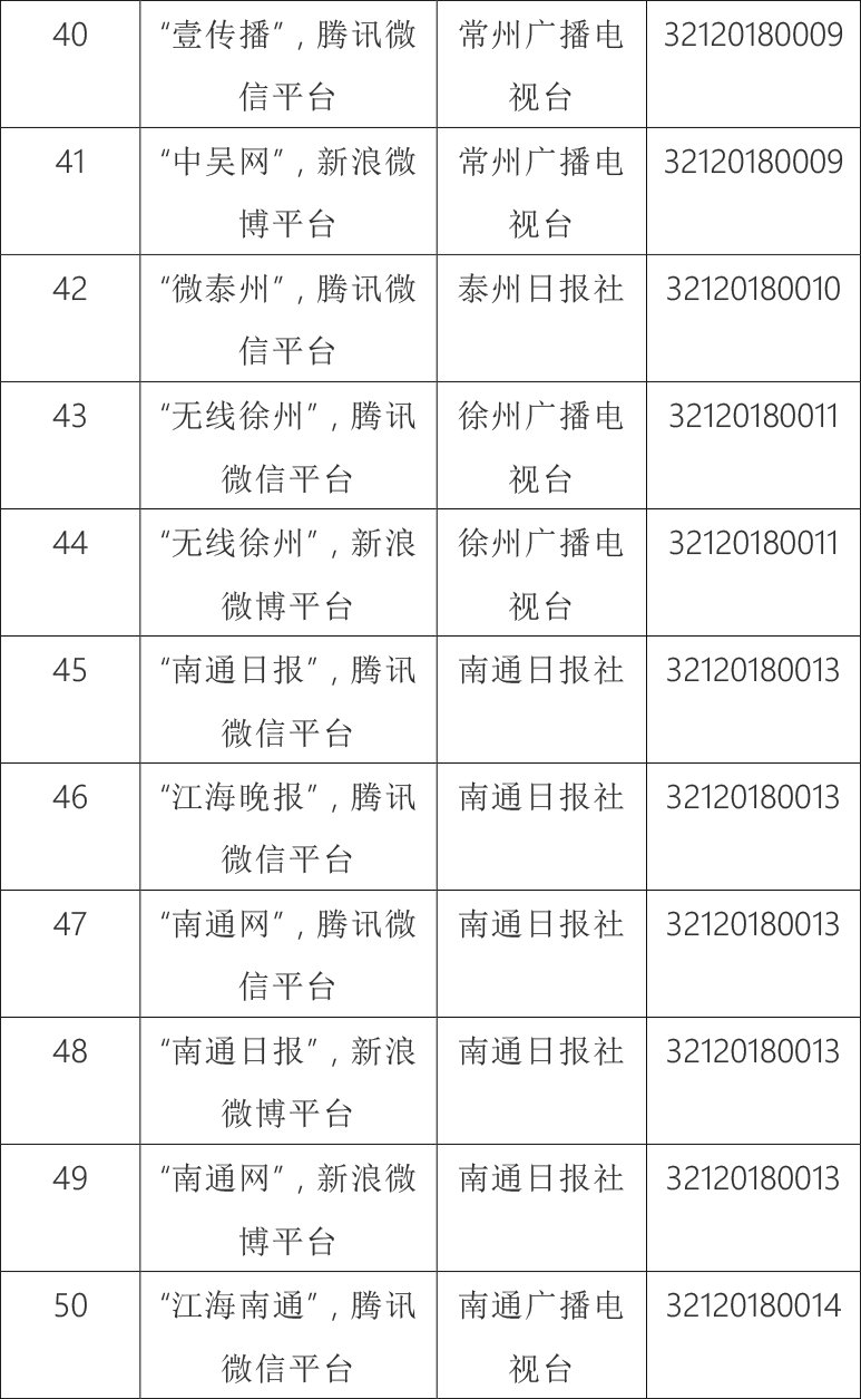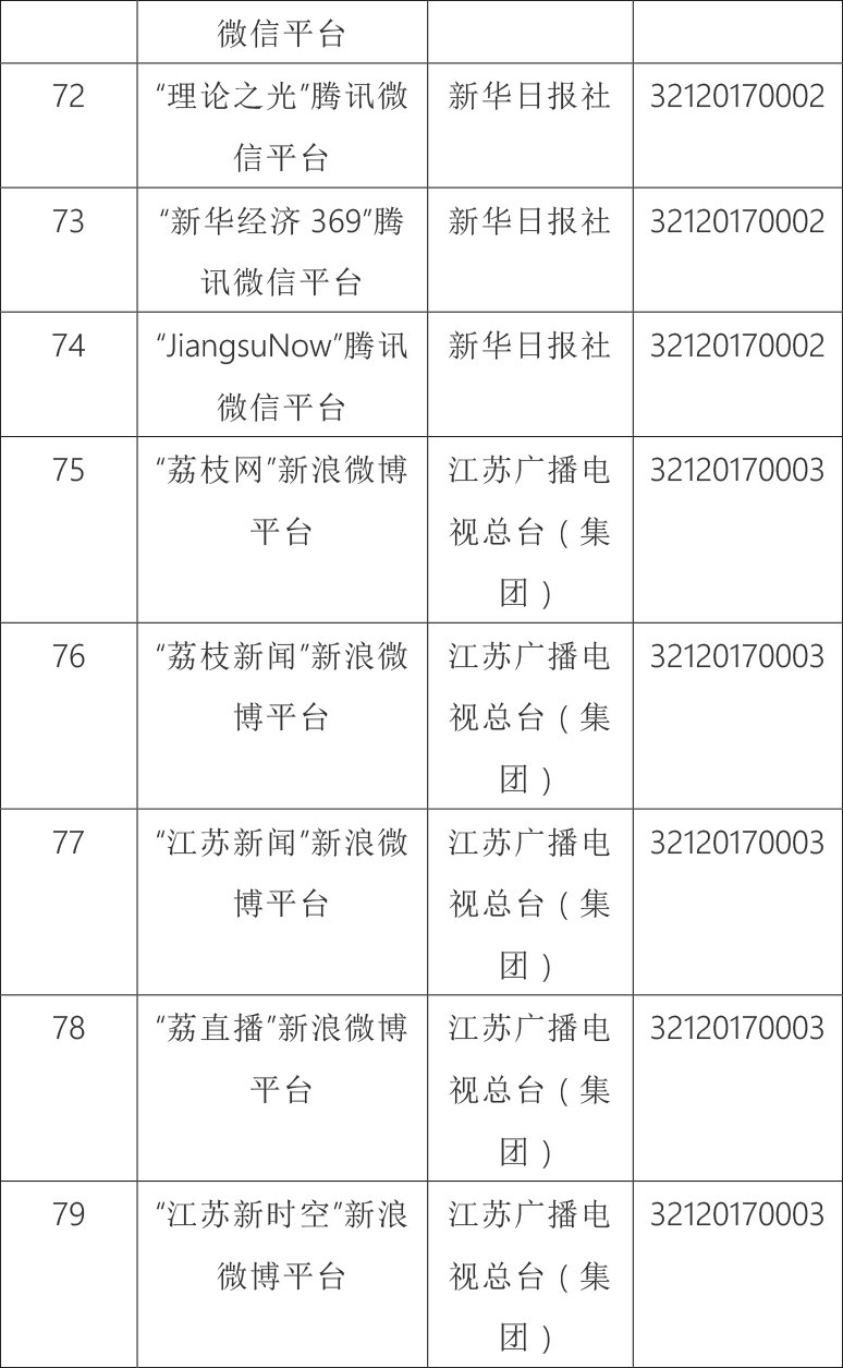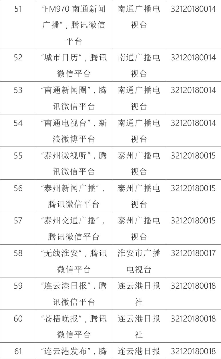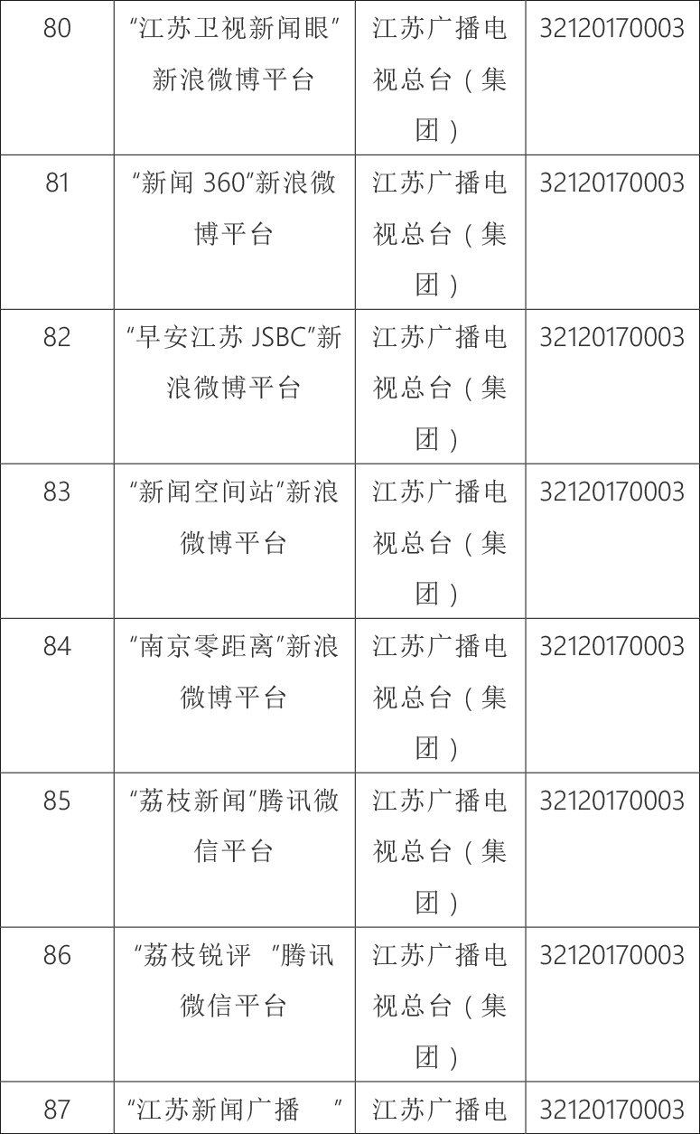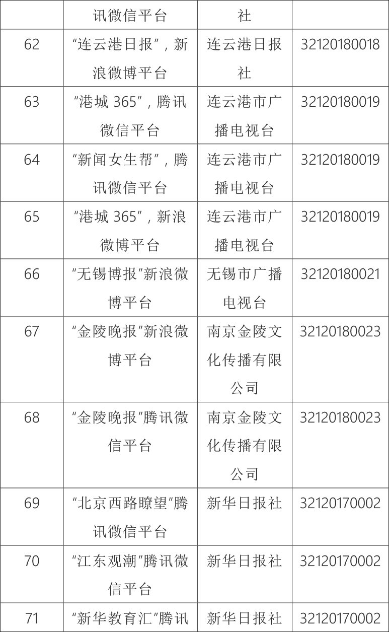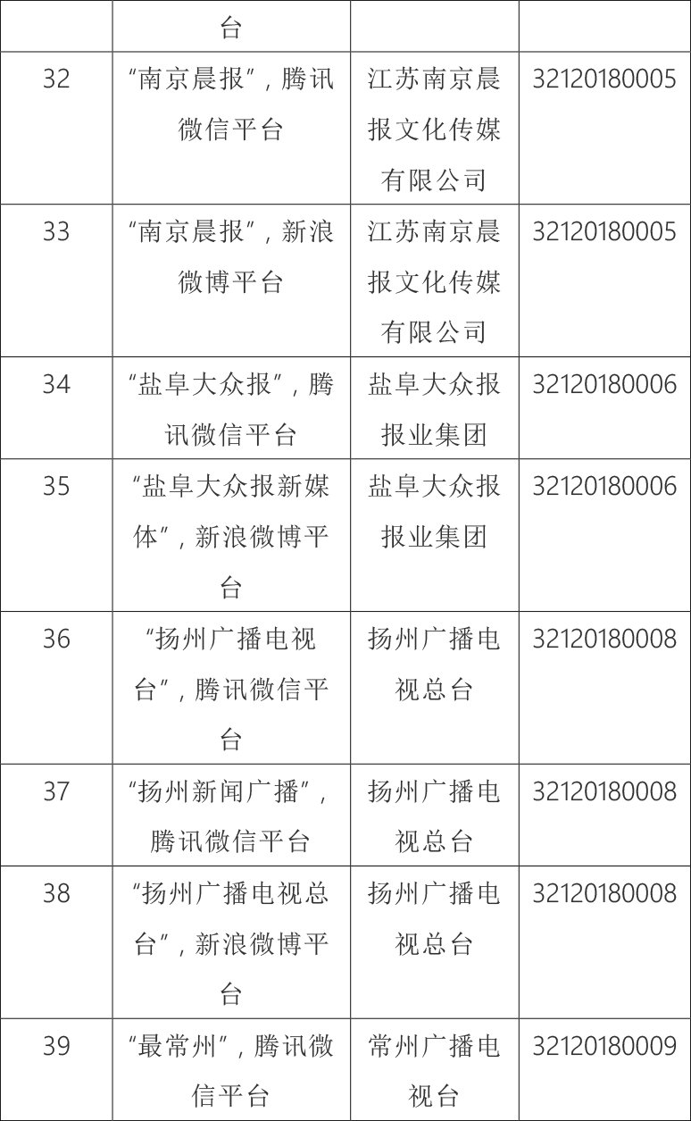 江苏省互联网信息办公室依法依规推进互联网新闻信息服务许可审批工作。截至目前,我省共有35家服务主体取得了互联网新闻信息服务许可证,现将互联网新闻信息服务单位相关许可信息予以公开,包括:互联网站37个,应用程序41个,论坛8个,博客1个,公众账号93个,其他2个,共计182个服务项。