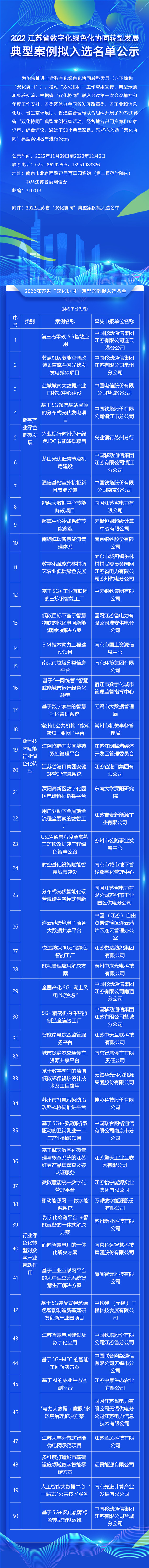 2022江苏省数字化绿色化协同转型发展典型案例拟入选名单公示