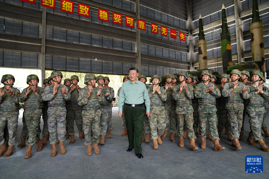 10月17日,中共中央总书记、国家主席、中央军委主席习近平到火箭军某旅视察。这是习近平在察看装备操作训练情况时,同官兵亲切交谈。