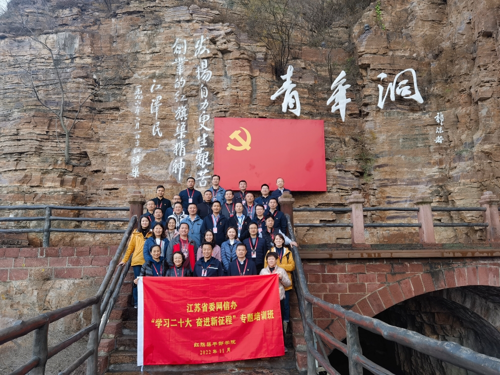 在全国全省上下深入学习贯彻党的二十大精神之际,11月15日-18日,江苏省委网信办组织党员干部赴红旗渠干部学院开展“学习二十大 奋进新征程”专题培训。江苏省委网信办副主任、机关党委书记陈智,江苏省委网信办二级巡视员杜家雷、周萍,机关党员干部共30余人参加。