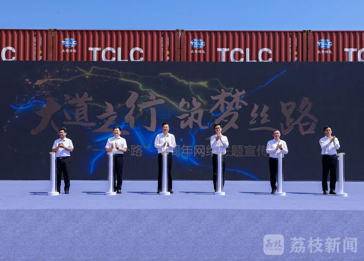十年大道同行,共筑丝路梦想。6月15日上午,在连云港中哈物流基地,随着“一带一路”卫星地图点亮,“大道之行 筑梦丝路”号中欧班列鸣笛启程,大型融媒体项目“大道之行 筑梦丝路”——“一带一路”十周年网络主题宣传活动正式拉开帷幕。