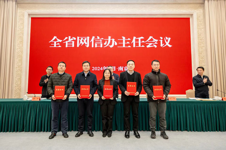 会议为2023年度全省网信工作创新案例和优秀调研成果颁奖。国家安全中心江苏分中心,南京、苏州、常州、南通市委网信办,省广电总台,徐工集团等7家单位负责人作交流发言。