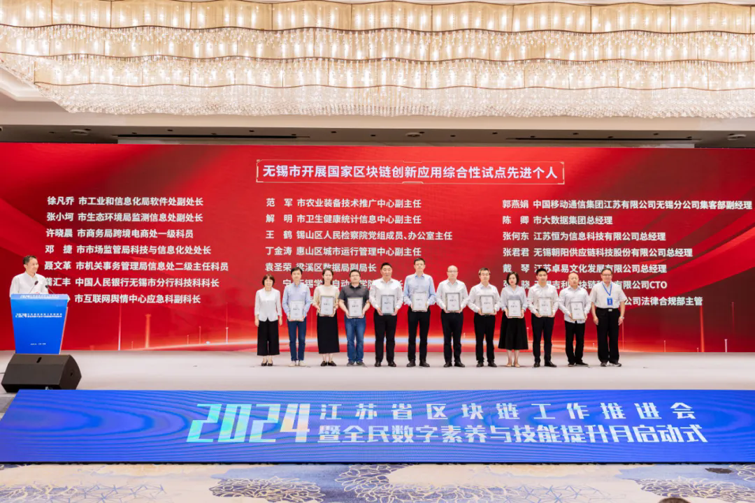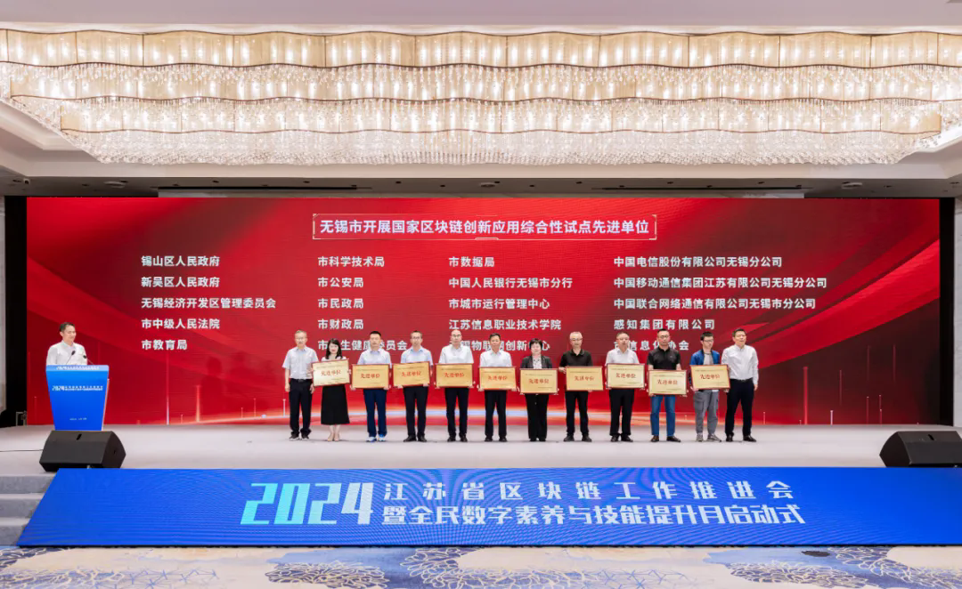会上发布了《江苏省区块链标准编制指引(试行)》,举行了无锡市开展国家区块链创新应用综合性试点先进单位、先进个人颁奖仪式。