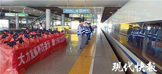 在浙江台州,中国国家地理标志产品黄岩蜜桔 " 坐 " 上了高铁车厢,从田间地头快速到达城市里的餐桌;在江苏苏州,闻名国内外的阳澄湖大闸蟹也借乘高铁快递的东风," 横行 " 四方。" 铁路 + 电商 " 的 " 快上加快 " 优势,架起了厂商、乡村与消费者之间快捷运输通道。