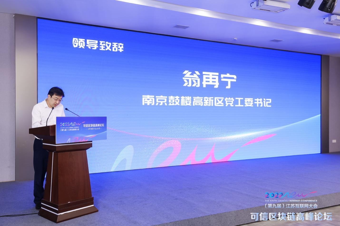 9月8日,以“共识信任,链上未来”为主题的2022(第九届)江苏互联网大会可信区块链高峰论坛在南京鼓楼创新广场成功举办。本次论坛设置了产业宣介、主旨演讲、圆桌论坛等环节,江苏省委网信办副主任王万军、南京鼓楼高新区党工委书记翁再宁致辞,江苏省互联网协会副理事长兼秘书长刘湘生、南京市委网信办副主任黄益峰参加会议。