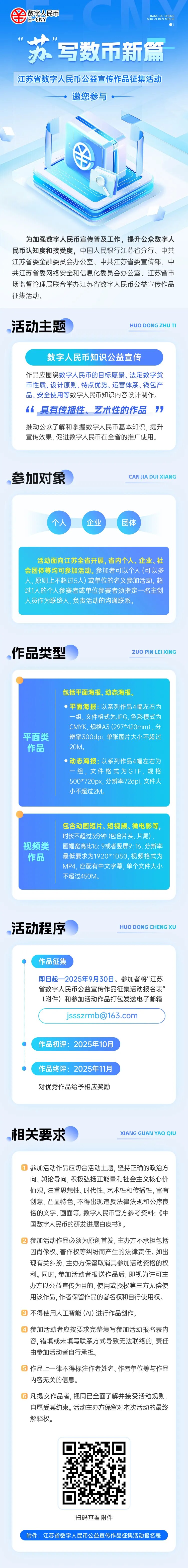“苏”写数币新篇|江苏省数字人民币公益宣传作品征集活动邀您参与!
