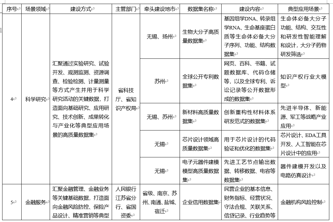 首批建设清单,锚定江苏数据富集领域及创新领域发力。清单共涉及工业制造、交通运输、医疗健康、科学研究、金融服务、文化旅游、城市治理、人力资源、绿色低碳、农业农村、智慧能源、教育教学、商务领域、应急管理、气象服务、公共安全16个重点领域,以及除上述重点领域外,通用大模型、数据跨境、政务服务等其他领域的高质量数据集。