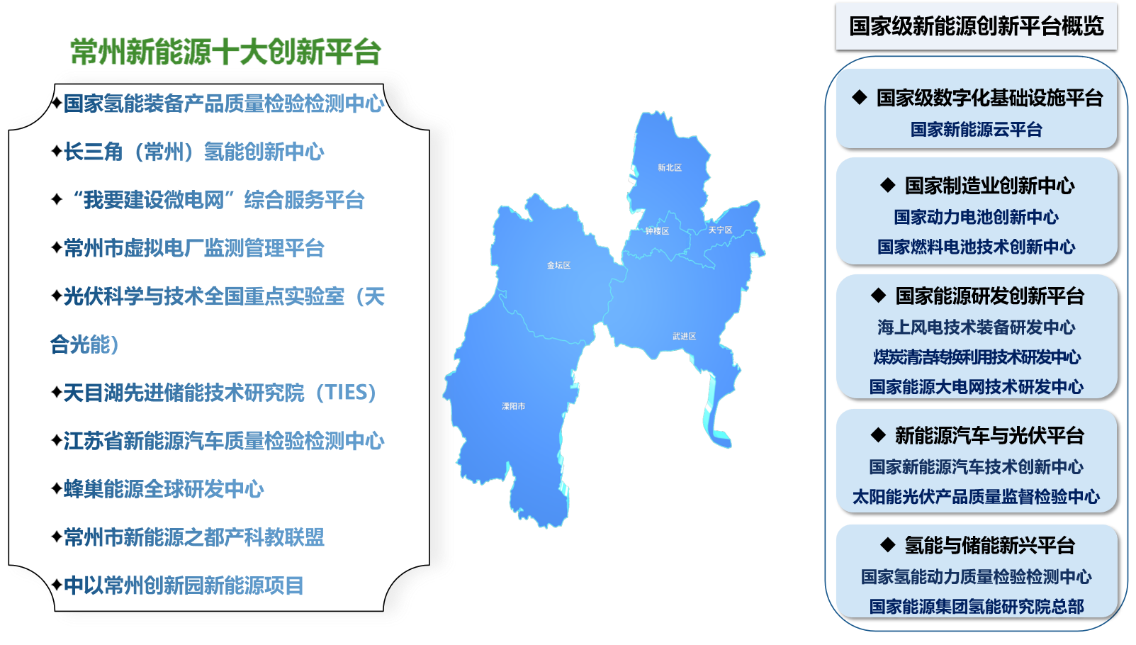 在常州,国家氢能装备产品质量检验检测中心、长三角(常州)氢能创新中心、“我要建设微电网”综合服务平台、常州市虚拟电厂监测管理平台、光伏科学与技术全国重点实验室(天合光能)、天目湖先进储能技术研究院(TIES)、江苏省新能源汽车质量检验检测中心、蜂巢能源全球研发中心、常州市新能源之都产科教联盟、中以常州创新园新能源项目等创新平台聚集资源和能量,激发创新“裂变”,为新能源产业创新提供智慧动力。