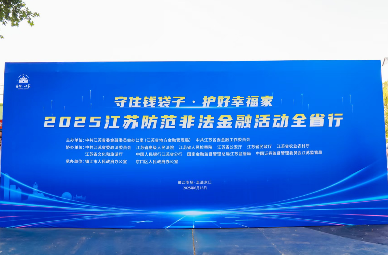 6月16日上午,江苏防范非法金融活动全省行在镇江市京口区正式启动。省委金融办、人民银行江苏省分行、江苏金融监管局、镇江市政府负责同志和省有关部门、有关金融机构相关负责同志参加活动。