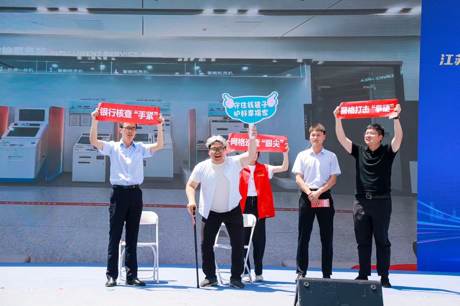 活动现场,省银行业协会、省保险业协会、省证券业协会、省金融业联合会发布“共筑防非阵线”倡议书。南京市公安局鼓楼分局、华泰证券、江苏银行、江苏农商联合银行、江苏信保集团、镇江农商行、海门农商行等单位,通过以案说法、套路解析、AI机器人、情景剧、相声、歌曲改编等群众喜闻乐见的形式,将防非知识传递给广大群众。