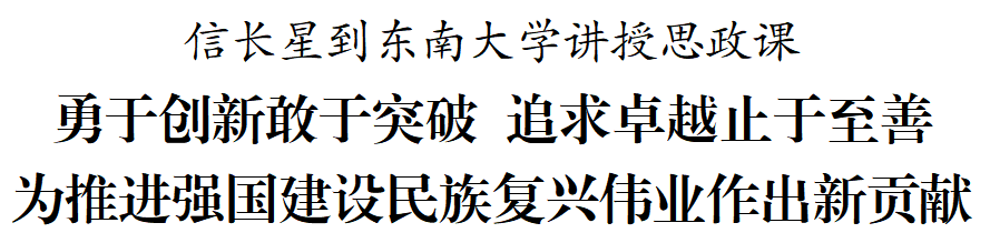 信长星指出,东南大学在我国教育科学事业发展中有着举足轻重的地位。广大青年学子生逢盛世、重任在肩,施展才干的舞台无比广阔,实现梦想的前景无比光明。希望大家坚定不移听党话、跟党走,珍惜时光好好学习,坚定文化自信、树立科学理念、提升专业素养,努力成为堪当民族复兴重任的时代新人。希望大家走上社会后,将自己所学积极投身改革发展实践,勇于创新、敢于突破,追求卓越、止于至善,为以中国式现代化全面推进强国建设、民族复兴伟业作出新贡献。真诚期待更多东大学子在江苏这片热土上施展才干、实现梦想,为江苏现代化建设添砖加瓦。