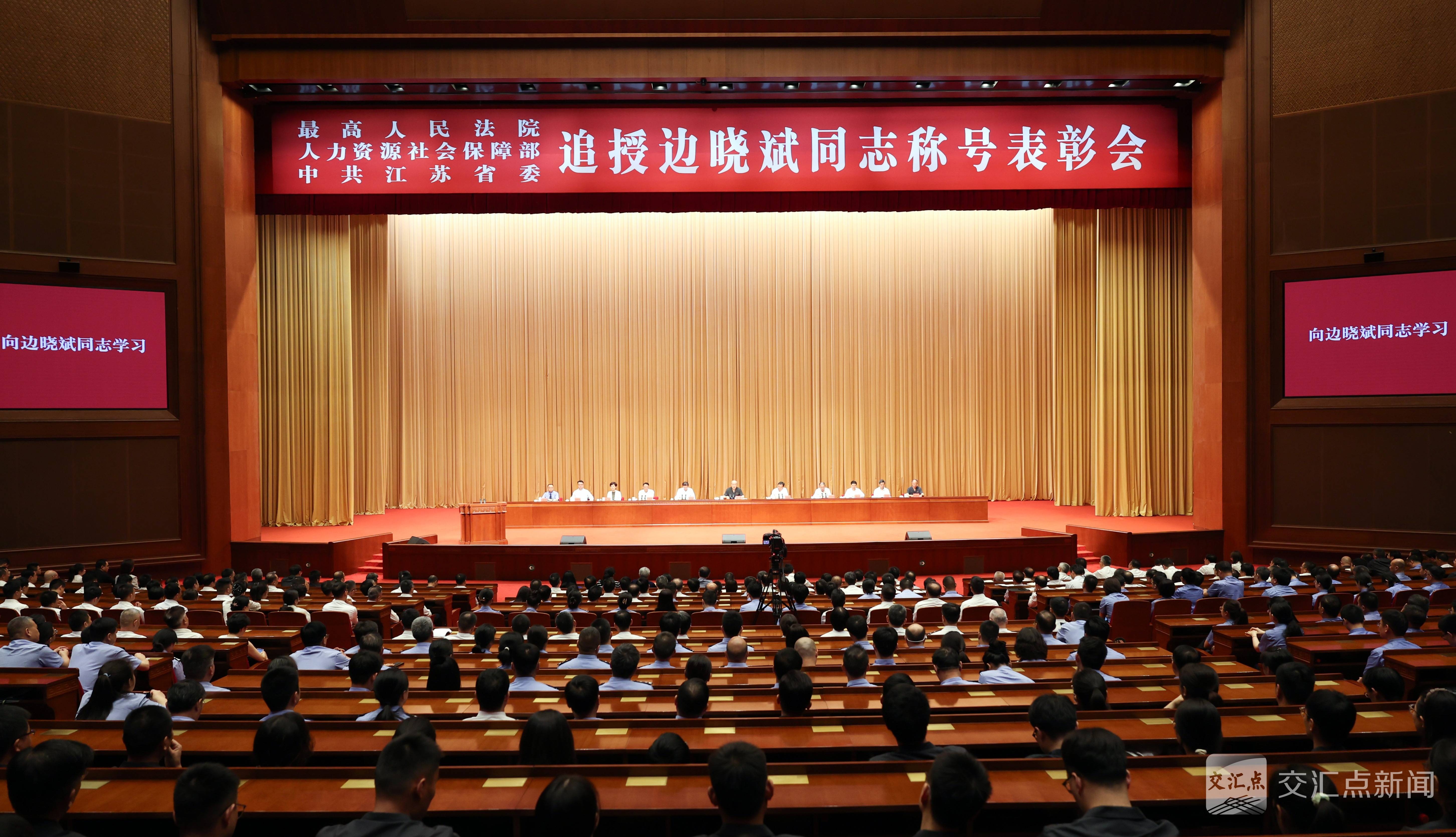 7月10日,最高人民法院、人力资源社会保障部、中共江苏省委在南京联合召开追授边晓斌同志称号表彰会,追授边晓斌同志“全国模范法官”、“江苏省优秀共产党员”称号。最高人民法院党组书记、院长张军,省委书记、省人大常委会主任信长星出席会议并讲话。省委副书记、省长许昆林主持会议。人力资源社会保障部党组成员、副部长俞家栋宣读追授边晓斌同志“全国模范法官”称号的决定,省委常委、省委组织部部长刘建洋宣读追授边晓斌同志“江苏省优秀共产党员”称号的决定。