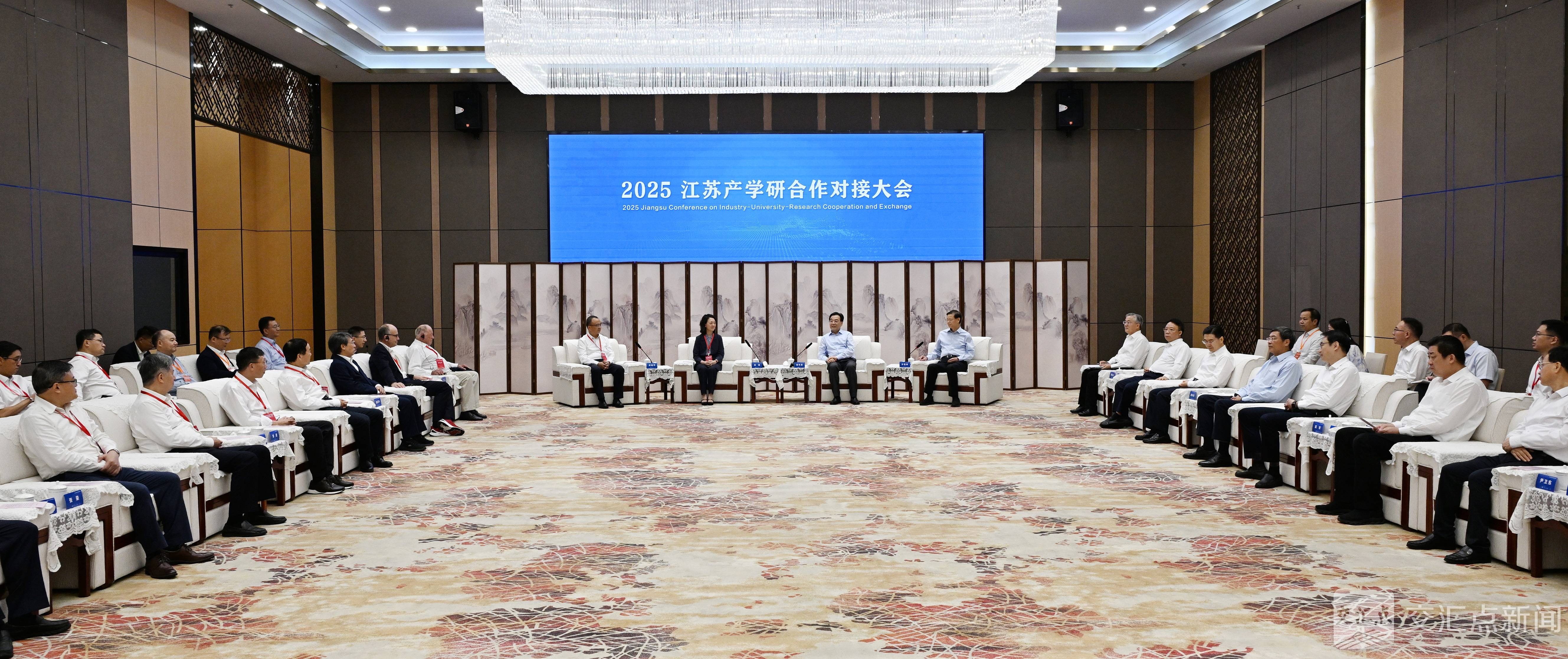 科技部党组成员、科技日报社社长吴兢,中国科学院副院长、中国科学院院士何宏平,诺贝尔化学奖获得者库尔特·维特里希,诺贝尔生理学或医学奖获得者托马斯·苏德霍夫,国家最高科学技术奖获得者、南方科技大学校长、中国科学院院士薛其坤,苏州实验室主任、中国工程院院士徐南平,中国科学技术大学校长、中国科学院院士常进,东南大学校长、中国工程院院士孙友宏,厦门大学党委书记、中国科学院院士张荣,华南理工大学校长、中国工程院院士唐洪武,澳门城市大学校长刘骏等先后发言。大家表示,当前,新一轮科技革命和产业变革深入发展,技术创新进入前所未有的密集活跃期。江苏是创新高地、产业高地,连续多年举办产学研合作对接大会,广泛集聚创新资源,深化开放合作,将进一步推动高校院所与企业密切互动,加快孕育新产业、新模式、新动能。将更好发挥优势,当好桥梁纽带,在现有良好基础上,拓展与江苏的交流合作,创造更加丰硕成果。