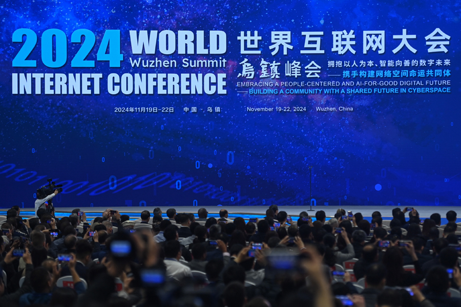 2024年11月20日,国家主席习近平向2024年世界互联网大会乌镇峰会开幕视频致贺。新华社记者 谢环驰 摄