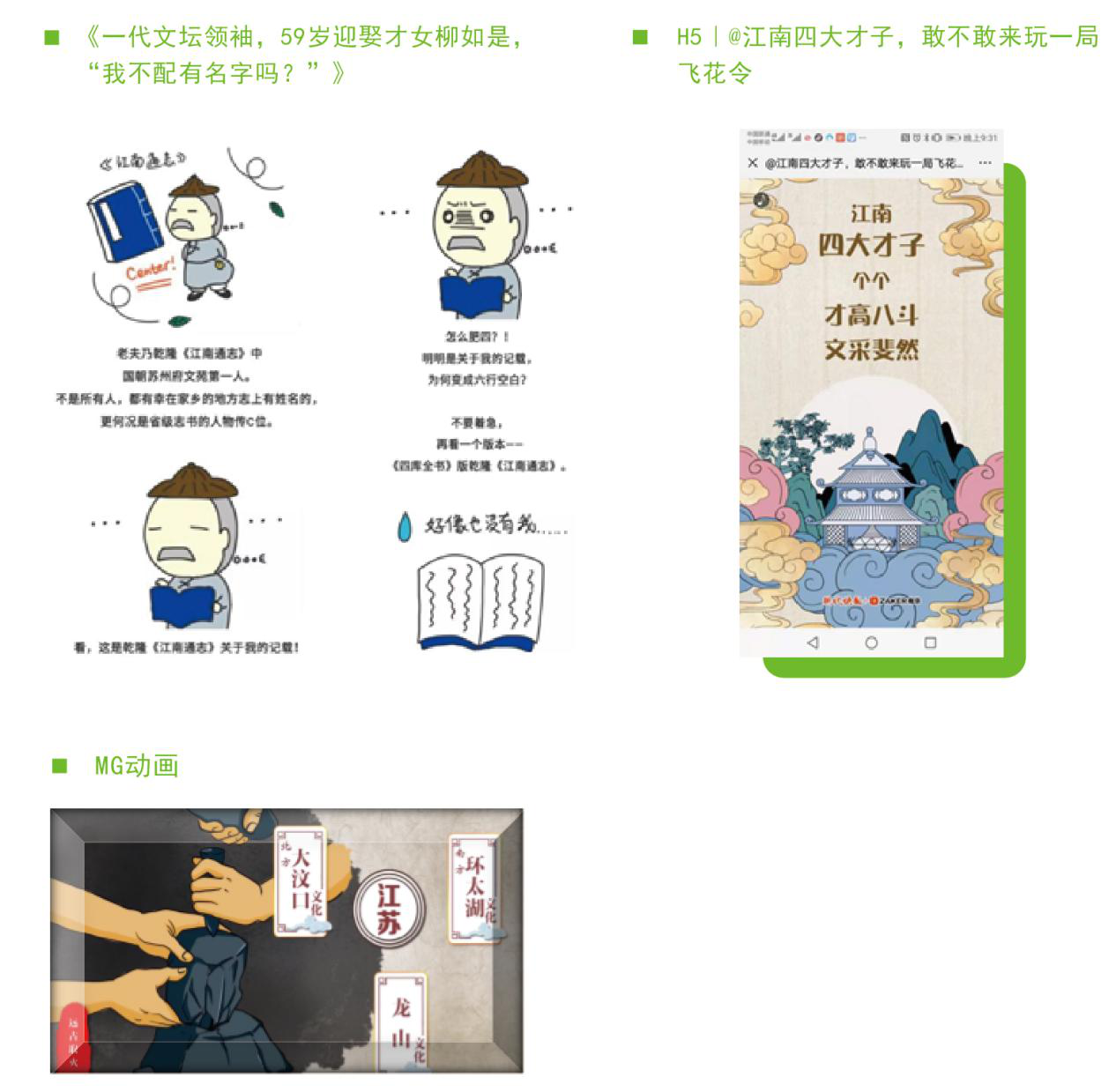 2019年刊发的原创文章已超过140篇,并且制作了视频、动图、手绘漫画、H5等多种融媒体产品。目前,该公众号已成为宣传江苏文脉工程、传播江苏文化的重要阵地。