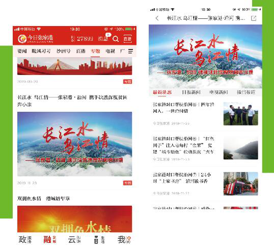 2019年,张家港市融媒体中心(传媒集团)按照习近平总书记重要讲话精神,积极探索媒体融合从“相加”到“相融”的扩展路径。自主研发了“今日张家港”APP,并通过“云沙洲”“融发布”“I生活”“政服务”等主版块设置,一方面打通了“新时代文明实践中心”与“融媒体中心”两大载体平台,全面对接“张家港智慧城市”建设;另一方面整合报纸、广播、电视、网站、微博、微信等媒体资源,旗帜鲜明地实施“移动优先”战略,打造移动传播矩阵、创新移动传播内容、抢占移动传播前沿,使理论宣讲、新闻信息、政务服务紧密结合,形成网上网下同心圆,有力地提升了引导群众、服务群众的能力。