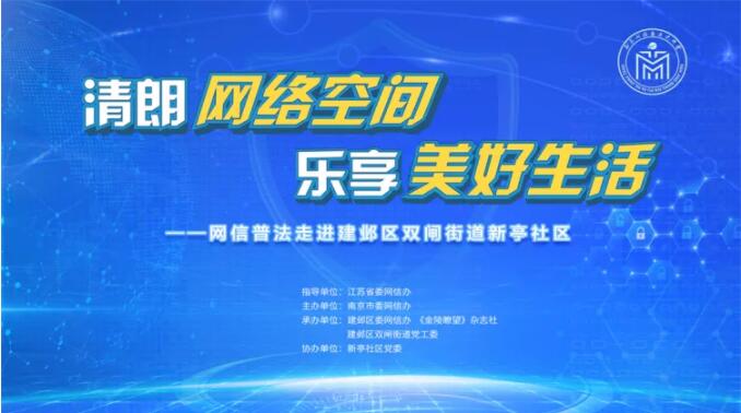 为进一步促进南京市网信普法工作深入开展,助推南京网络综合治理体系建设,探索网络综合治理的基层实践模式,结合“网信普法进社区”活动,举行了“南京市网信普法试点社区”揭牌仪式,推动社区、小区自主网信普法常态化开展。