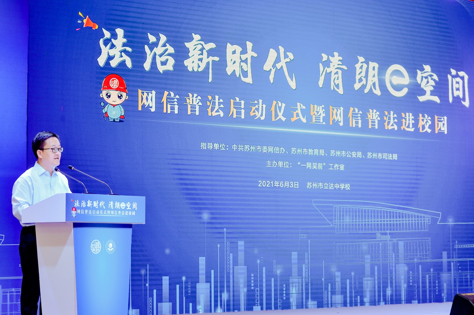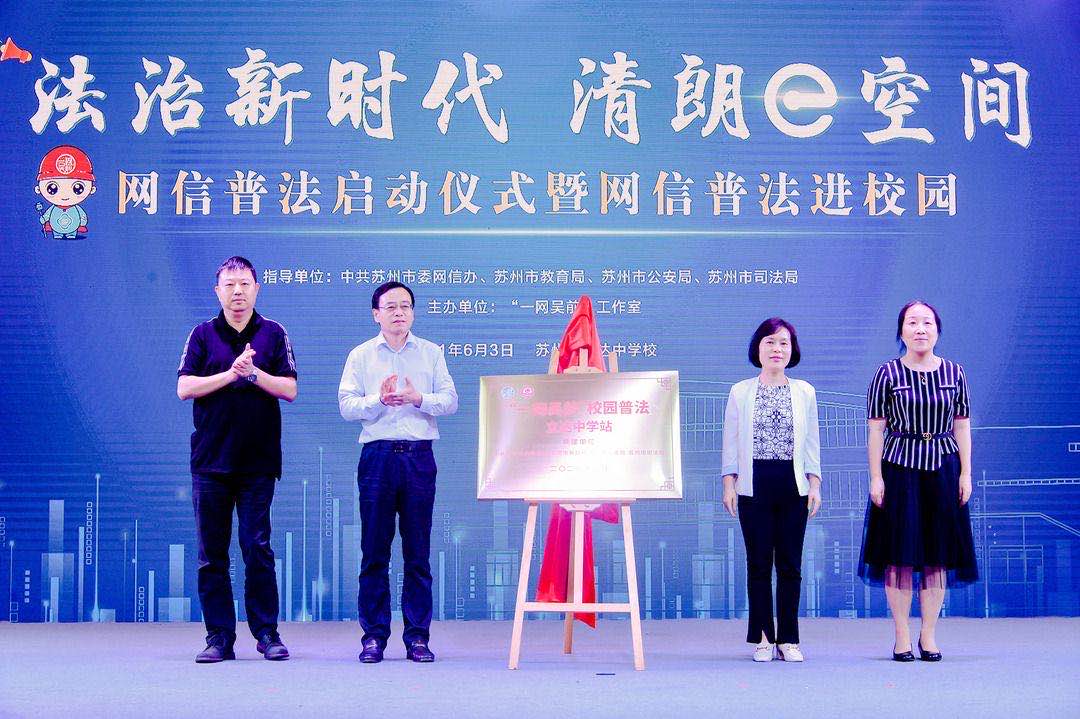 为进一步提升网信普法水平,推动全市法治宣传教育工作深入开展,6月3日,“一网吴前”苏州市网信普法启动仪式暨网信普法“进校园”活动,在苏州市立达中学校举行。