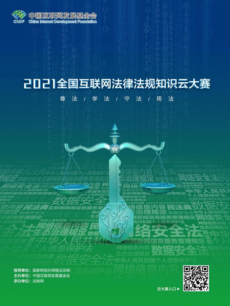 由国家网信办网络法治局指导、中国互联网发展基金会主办、法制网承办的“2021全国互联网法律法规知识云大赛”将于11月23日正式启动。本次竞赛活动历时一个月,全国互联网从业人员和网民可通过关注“法制网”微信公众号参与答题。云大赛期间,每天随机抽取获奖者给予奖励,云大赛结束后还将进行总结发布活动。