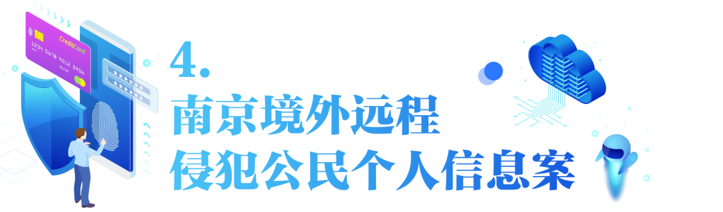 2020年5月,南京公安机关成功打掉一个以境外人员为首,行业“内鬼”参与的侵犯公民个人信息团伙。案件发现,受境外人员高利蛊惑,部分行业“内鬼”在单位内部网络架设控制设备,实现境外远程查询下载公民个人信息。案件共抓获嫌疑人19名,缴获各类作案设备52台,清除各行业违规使用设备200余部,该团伙侵犯公民个人信息8万余条,非法获利500余万。此案侦办及时消除了隐藏于国家内部网络重大安全隐患,有力保护公民个人信息安全。