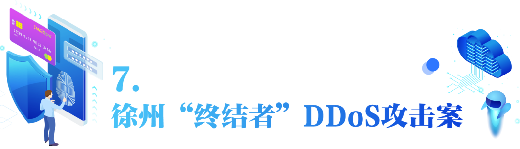 在“净网2020”专项行动中,徐州公安机关一举打掉6个专门从事网络攻击破坏的网站平台,抓获DDoS攻击站长、代理及下游黑灰产客户等犯罪嫌疑人14名,向全国发起23条有价值线索,支撑抓获多名黑灰产从业人员。经查,2020年8月以来,犯罪嫌疑人陈某等人经营的“终结者”“地球”“暗夜”等6家DDoS攻击平台相互合作,有偿提供网络攻击服务,涉案金额近百万元。大量黑灰产从业人员使用上述平台,发起高频次大流量DDoS攻击破坏活动,瞬间造成大量服务器瘫痪,严重危害网络秩序安全。此案成功侦办,有力震慑DDoS攻击破坏犯罪活动,有效净化网络生态环境。