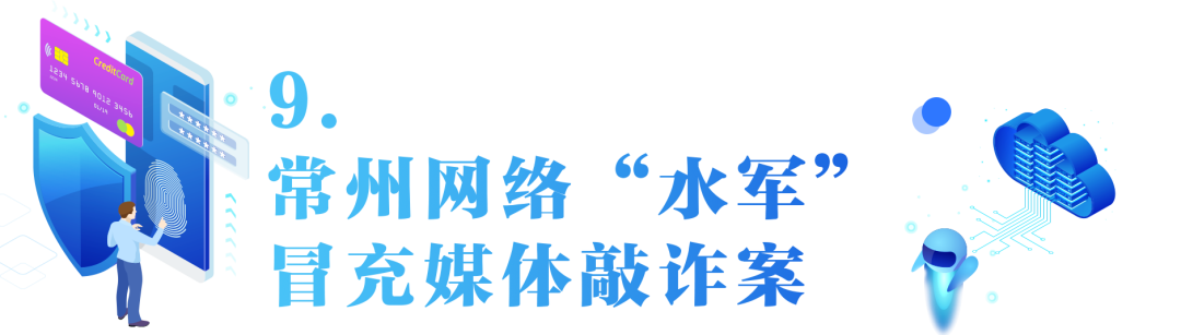 2020年1月,常州公安机关打掉一个网络“水军”团伙,抓获犯罪嫌疑人18名,扣押作案设备39部,缴获虚假证件50余本,关停非法“水军”网站20家,依法取缔“人民日报社分部”等非法新闻机构5个。查明自2018年11月以来,该团伙成立南京紫悦云文化传媒有限公司,租用境外服务器,冒充人民日报等新闻媒体,开设《人民日报社中国零距离网》等虚假网站,在江苏、安徽、上海等地,以曝光环保、拆迁、执法不规范等问题为由,向相关单位索要钱财。该团伙累计40余起,敲诈金额达200余万元。2020年8月11日,常州市武进区人民法院依法对主犯张某明等12人分别判处七个月至五年不等有期徒刑并处罚金。