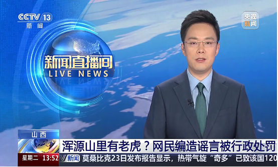 近日,山西大同浑源警方公布了一起网络谣言案:浑源县某网民在某短视频平台散布“浑源山里出现老虎”,引起广大人民群众关注和当地居民恐慌,扰乱当地居民生活。