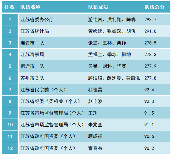 2、根据竞赛规则,省级机关及各地参赛队伍中排名前6的队伍晋级决赛。