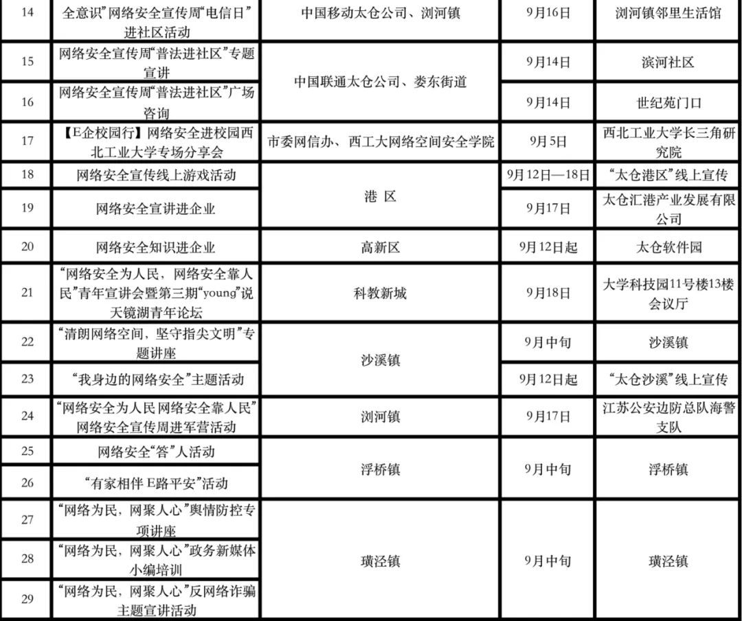 以上活动紧紧围绕“网络安全为人民,网络安全靠人民”这一主题,围绕校园日、电信日、法治日、金融日、青少年日、个人信息保护日六大主题日,发动社会各界广泛参与,提高全社会网络安全意识和防范水平。