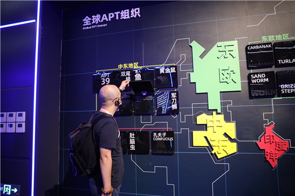 通过全景态势互动展示的方式,介绍APTT(高级持续性威胁)攻击的源头、路径、频次等知识。中国网 彭瑶 摄