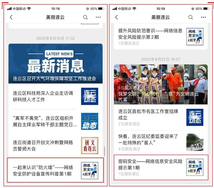 在政务微信开设“网络安全e起学”专栏宣传网络安全知识;