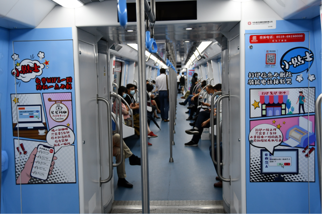 今年以来,常州市委网信办整合线上线下网安资源,依托地铁1号线创新推出“常州网安号”主题地铁,以车厢为载体,着力打造传递网络安全知识的宣传窗口以及提供网络安全服务资源的交流平台。