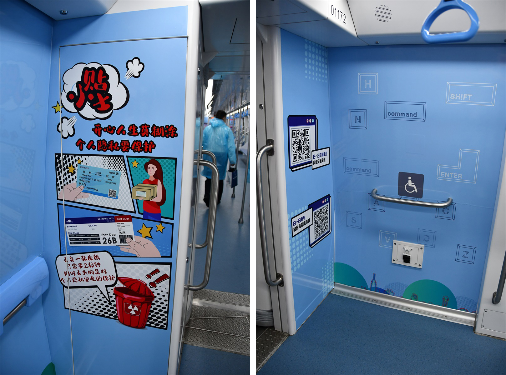 “常州网安号”共有6节车厢,通过各类网安小贴士、俏皮生动的漫画、扫码获海量资讯等方式传播安全上网、文明上网理念,进一步“提升广大人民群众在网络空间的获得感、幸福感和安全感”。