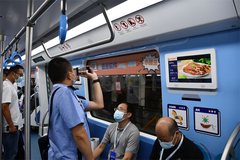 今年以来,常州市委网信办整合线上线下网安资源,依托地铁1号线创新推出“常州网安号”主题地铁,以车厢为载体,着力打造传递网络安全知识的宣传窗口以及提供网络安全服务资源的交流平台。