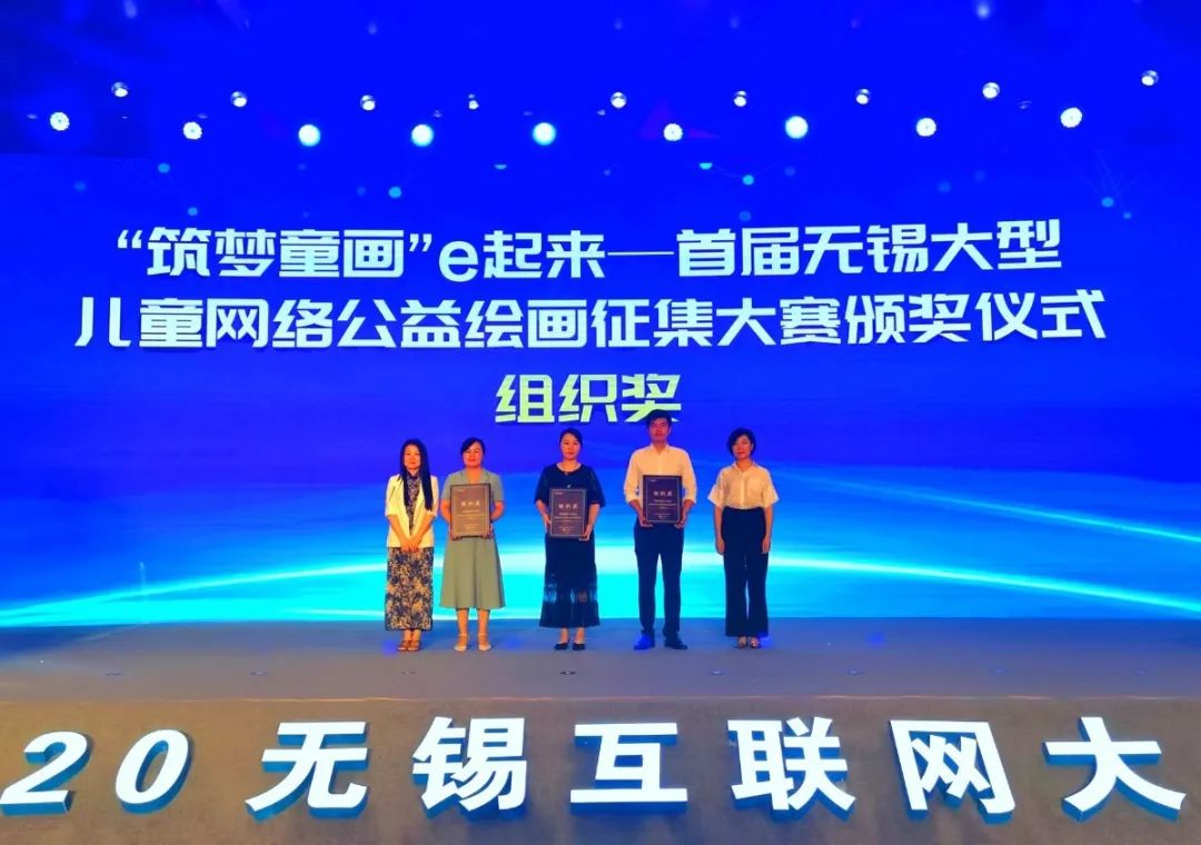 现场为“筑梦童画”e起来——大型儿童网络公益绘画大赛优秀作品颁奖。