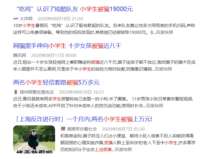 由于疫情影响,今年上半年在家呆了接近一学期的同学们,上网课、写作业、玩游戏等,都不可避免地接触网络,在信息时代,还没有能力分辨网上信息的学生,可能因为点击不明链接、购买游戏装备而受骗,让不少家长为此头疼。