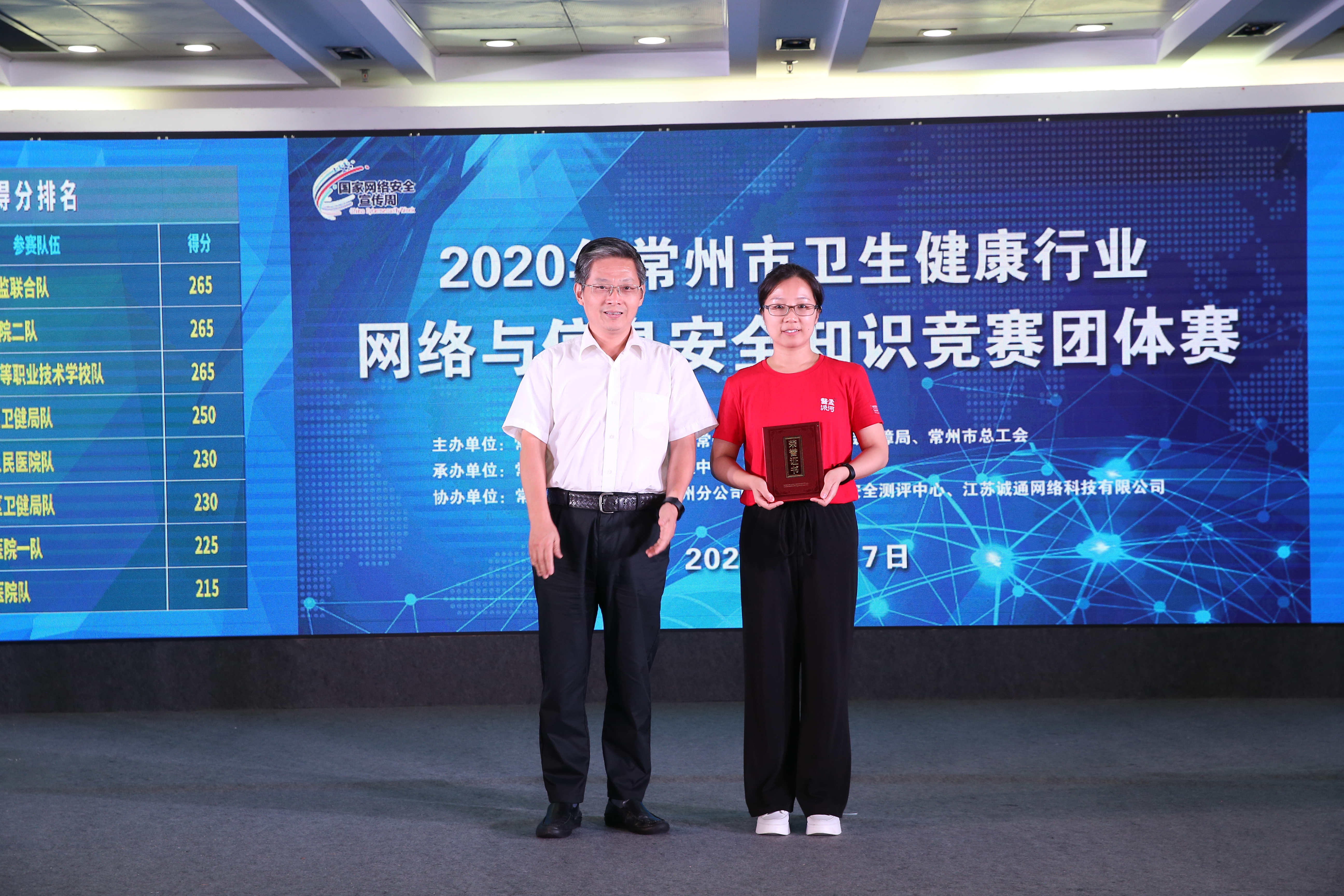 9月17日下午,2020年常州市卫健行业网络与信息安全知识竞赛在邮电大厦圆满结束。本次竞赛是常州市卫健委、常州市人社局和常州市总工会共同举办的二级竞赛,由常州市卫生健康数据管理中心承办、常州大学和中国电信常州分公司协办。