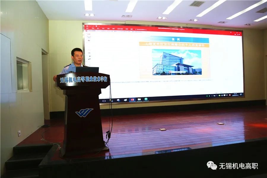 无锡市公安局网安支队倪涛作专题讲座。他围绕安全事件层出不穷的原因、网络安全面临重大挑战、中国互联网局势、识诈防诈技巧、如何预防网络安全问题、手机使用安全要点和网络谣言等方面,系统的向现场师生讲述网络安全知识等各类实用信息。他强调,网络不是法外之地,犯罪终归逃不出法律的制裁,并结合典型案例,向广大师生集中宣传网络安全知识及相关配套法规,增强师生们的网络安全知识和技能。