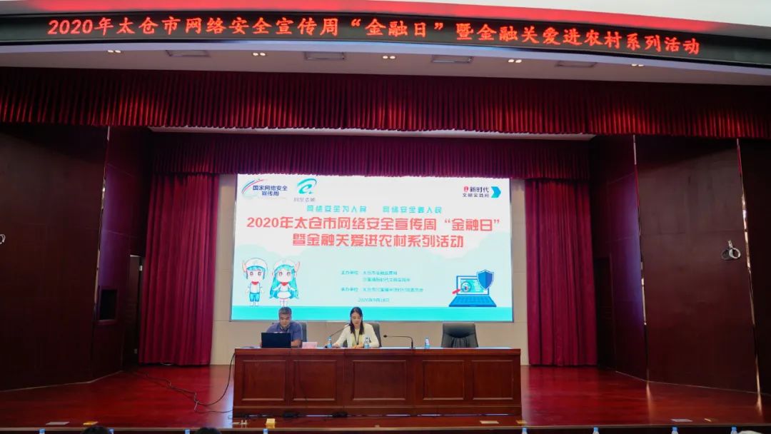 作为2020年太仓市网络安全宣传周系列活动之一,9月18日下午,太仓市沙溪镇新时代文明实践所、太仓市金融监管局共同举办了网络安全宣传周“金融日”暨金融关爱进农村活动。全镇28个村居群众代表等近150余人参加了本次活动。