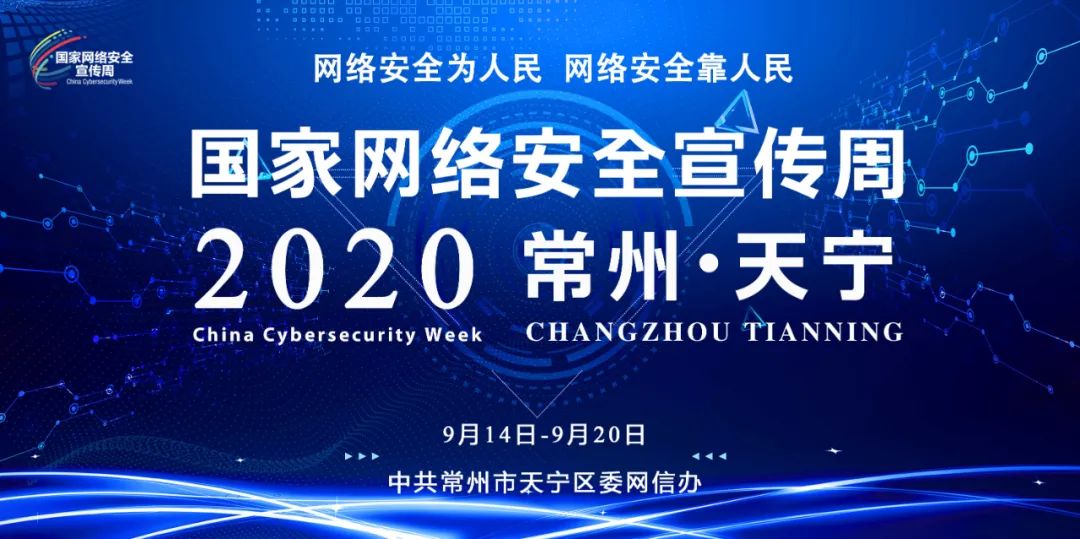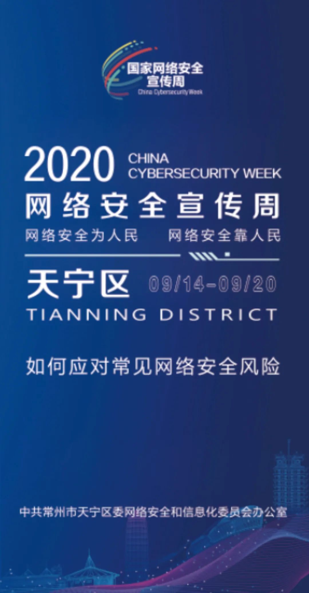 9月14日起,以“网络安全为人民、网络安全靠人民”为主题的2020年天宁区网络安全宣传周启动!
