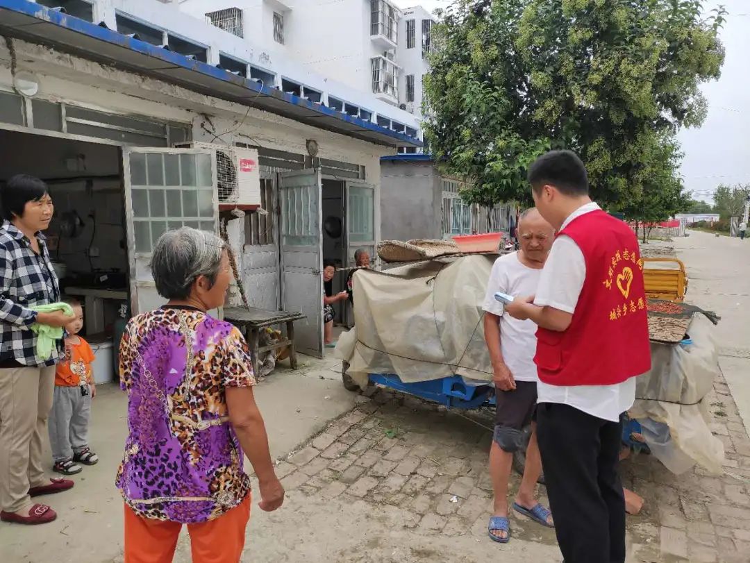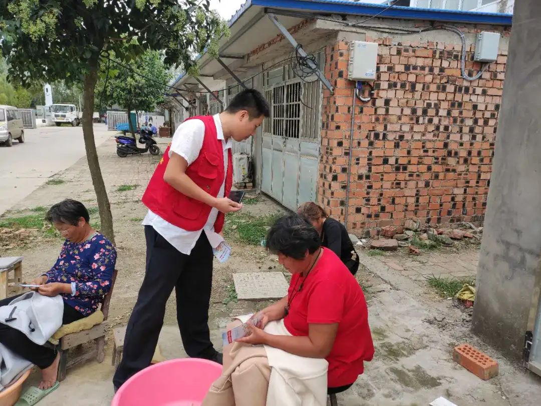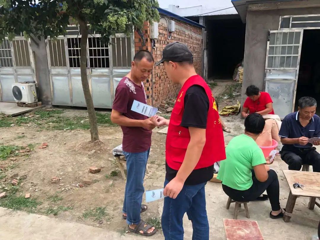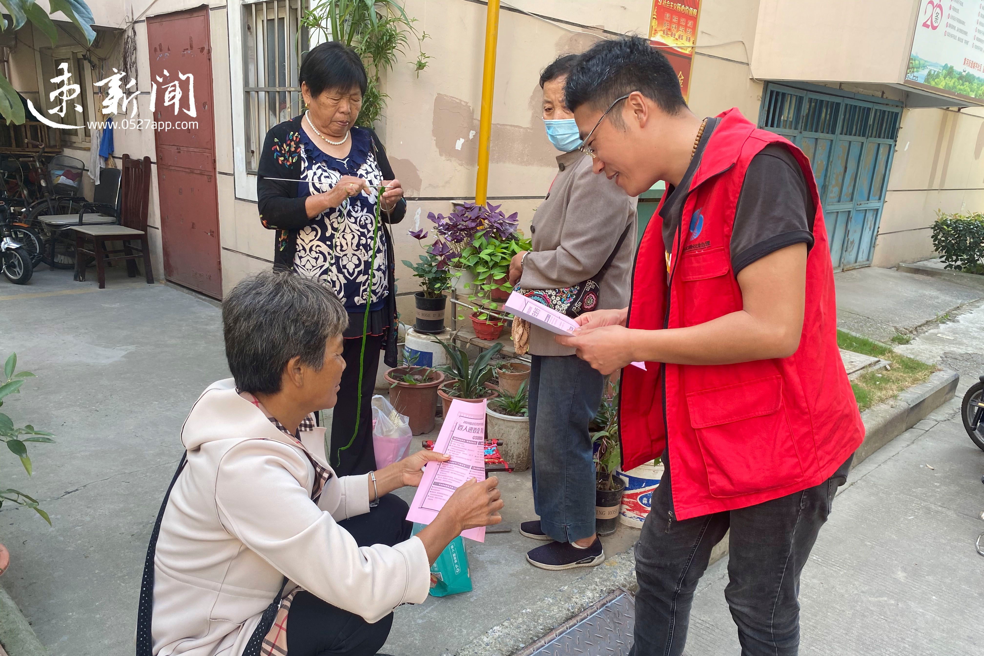 志愿者入社区发放防范网络诈骗宣传折页,给居民讲解网络安全相关知识。