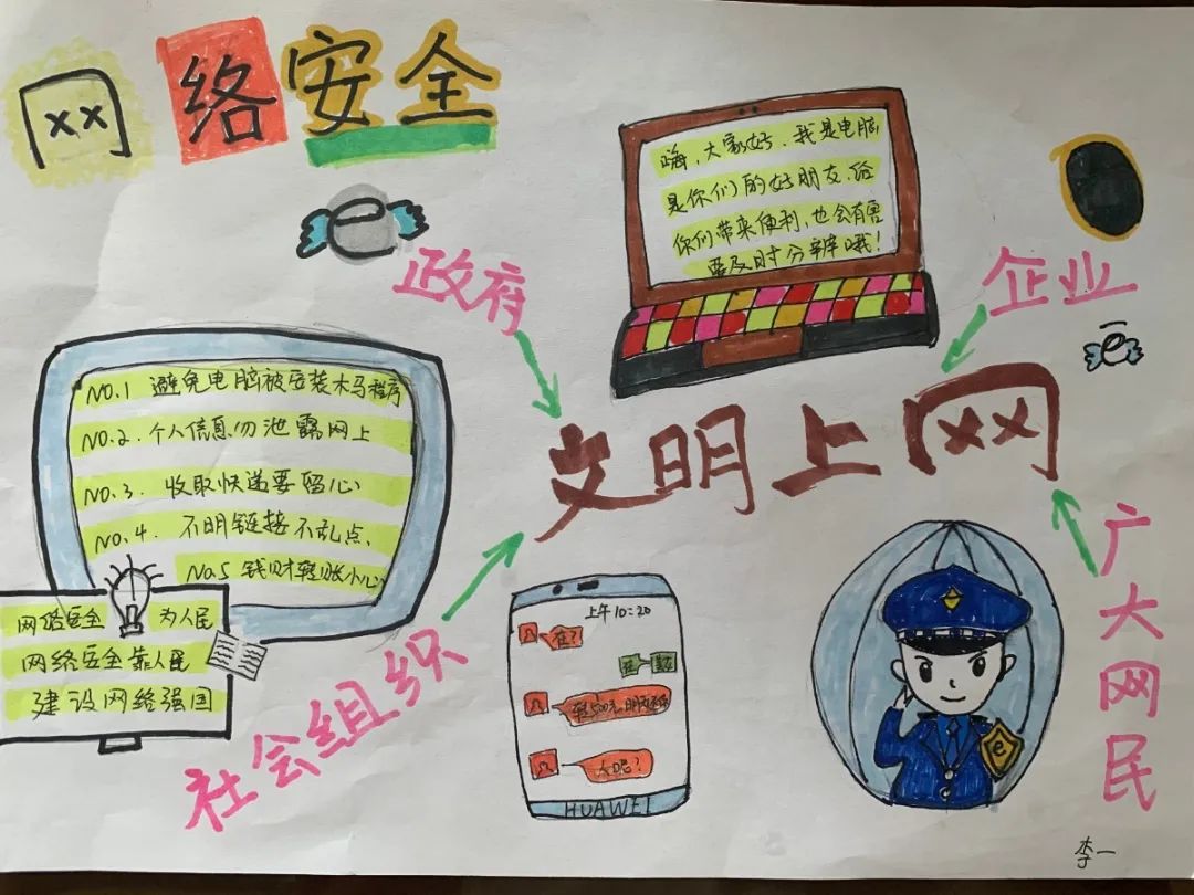 此外,学校还组织学生制作网络安全手抄报,以寓教于乐的形式,进一步增强了青少年的网络安全防范意识。