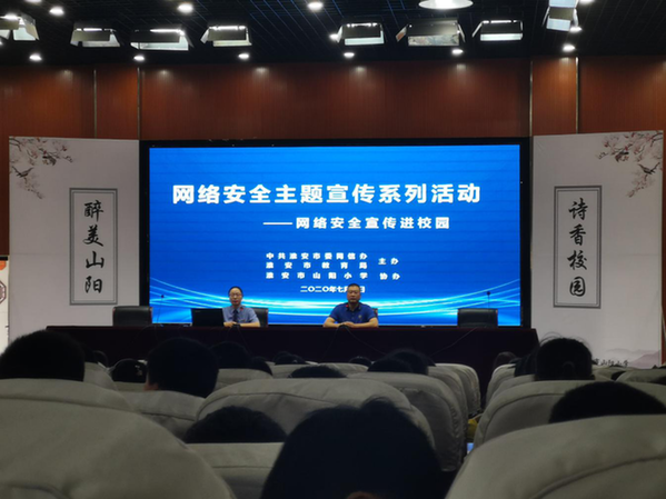 9月14日上午,江苏网信办会同省教育厅、省公安厅、省通信管理局、中国人民银行南京分行、省总工会、团省委、省妇联等部门联合举办的2020年江苏省网络安全宣传周在淮安启动。活动现场,以“织牢织密网络安全网”为主线,播放了《淮安网安24小时》宣传片,全方位多角度展现淮安网安工作成效,受到了与会代表嘉宾的高度肯定。